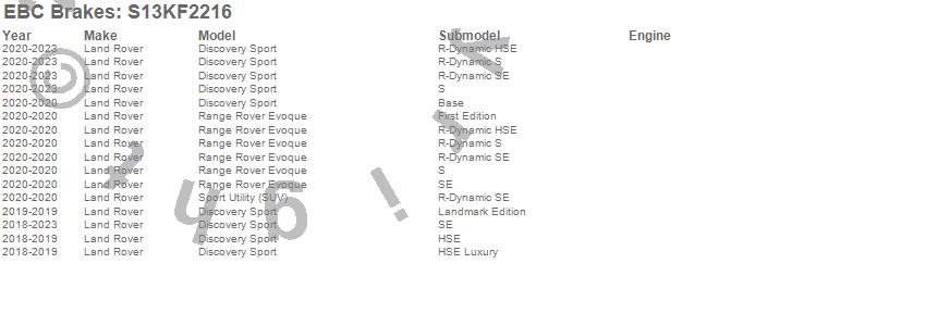 Below is an abbreviated list of applications for the S13 Kits Yellowstuff and RK Rotors.