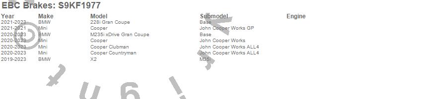 Below is an abbreviated list of applications for the S9 Kits Yellowstuff and USR Rotors.