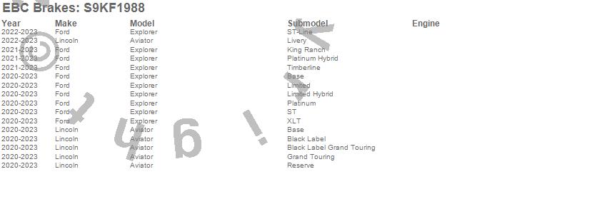 Below is an abbreviated list of applications for the S9 Kits Yellowstuff and USR Rotors.