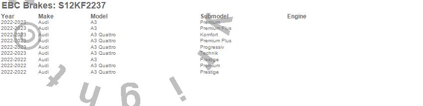 Below is an abbreviated list of applications for the S12 Kits Redstuff and RK Rotors.
