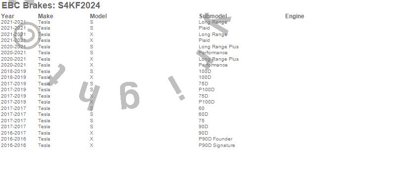 Below is an abbreviated list of applications for the S4 Kits Redstuff and USR Rotor.