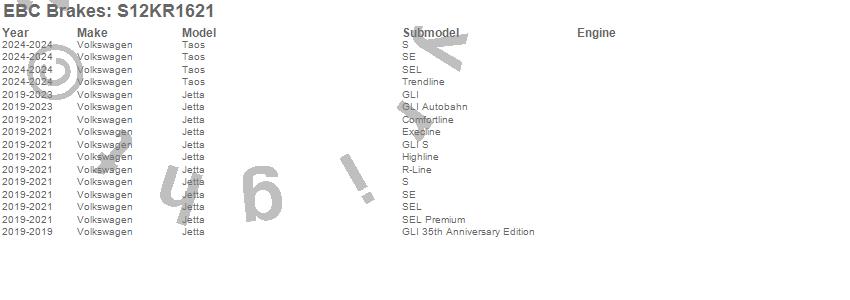 Below is an abbreviated list of applications for the S12 Kits Redstuff and RK Rotors.