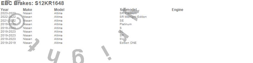 Below is an abbreviated list of applications for the S12 Kits Redstuff and RK Rotors.