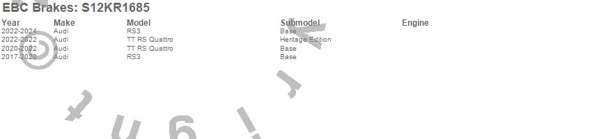 Below is an abbreviated list of applications for the S12 Kits Redstuff and RK Rotors.