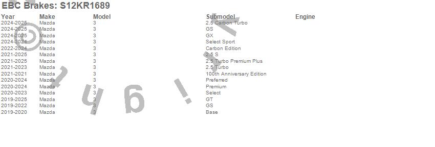 Below is an abbreviated list of applications for the S12 Kits Redstuff and RK Rotors.