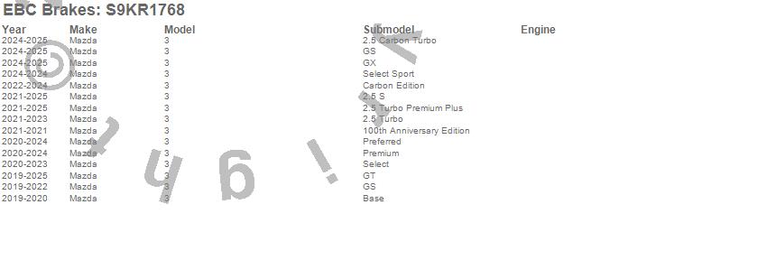 Below is an abbreviated list of applications for the S9 Kits Yellowstuff and USR Rotors.