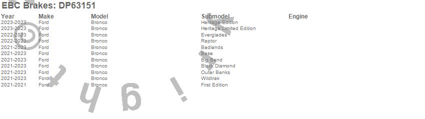 Below is an abbreviated list of applications for the 6000 Series Greenstuff Truck/SUV Brakes Disc Pads.