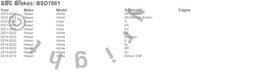 Below is an abbreviated list of applications for the BSD Series Sport Rotor Set w/Ultra Quiet V Slot Configuration.