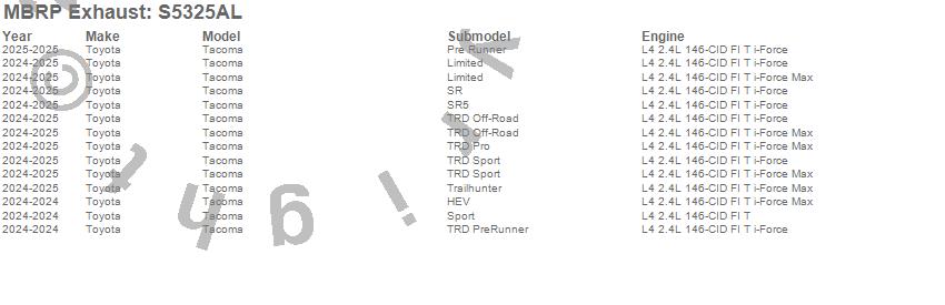 Below is an abbreviated list of applications for the Armor Lite Cat Back Exhaust System.