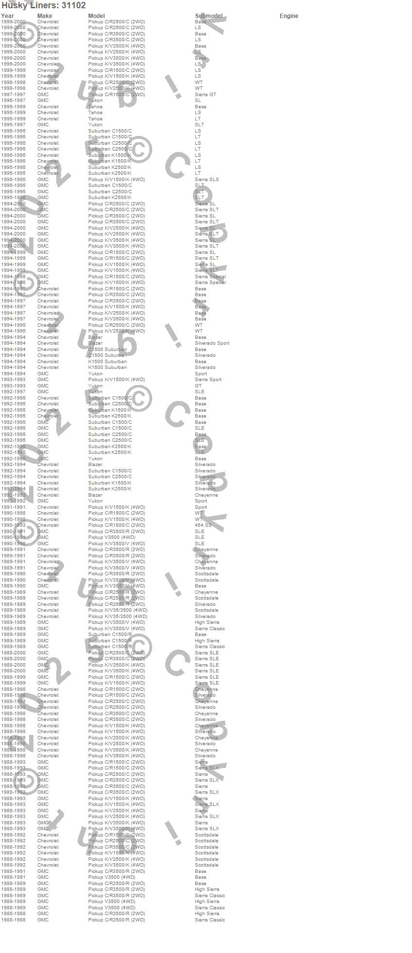 Below is an abbreviated list of applications for the Classic Style Floor Liner.