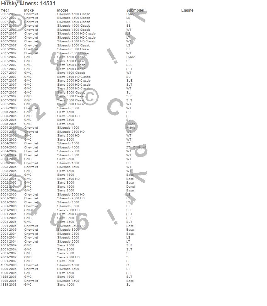Below is an abbreviated list of applications for the WeatherBeater Floor Liner.