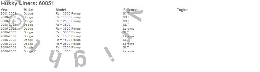 Below is an abbreviated list of applications for the Classic Style Floor Liner.