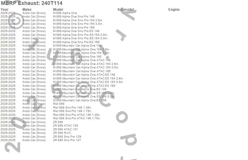 Below is an abbreviated list of applications for the Snowmobile Trail Muffler.