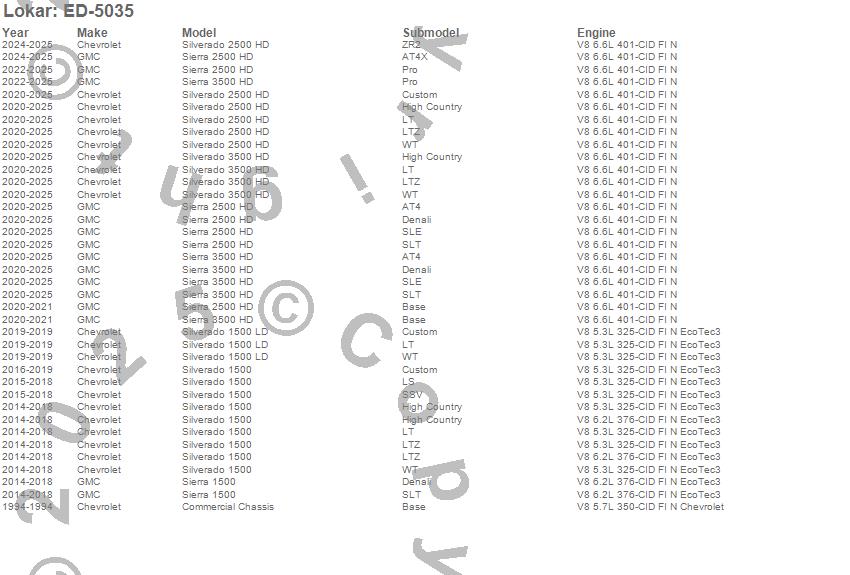 Commercial Chassis, Sierra 1500, Sierra 2500 HD, Sierra 3500 HD, Silverado 1500, Silverado 1500 LD, Silverado 2500 HD, Silverado 3500 HD, Chevrolet, GMC, 2025, 2024, 2023, 2022, 2021, 2020, 2019, 2018, 2017, 2016