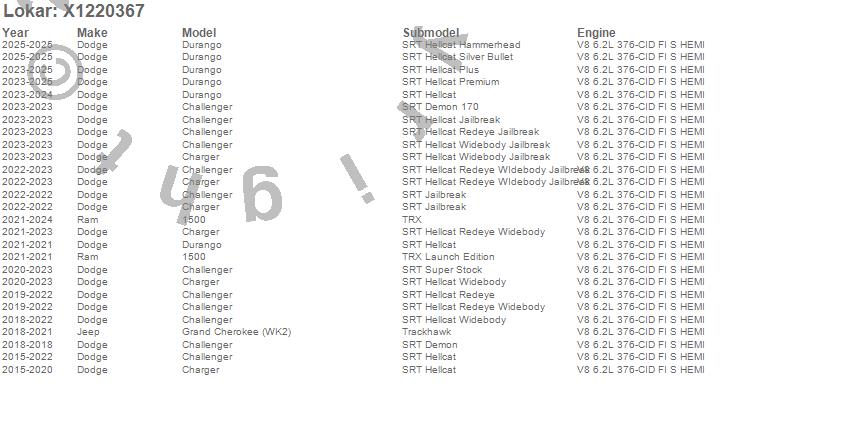 1500, Challenger, Charger, Durango, Grand Cherokee (WK2), Dodge, Jeep, Ram, 2025, 2024, 2023, 2022, 2021, 2020, 2019, 2018, 2017, 2016, 2015