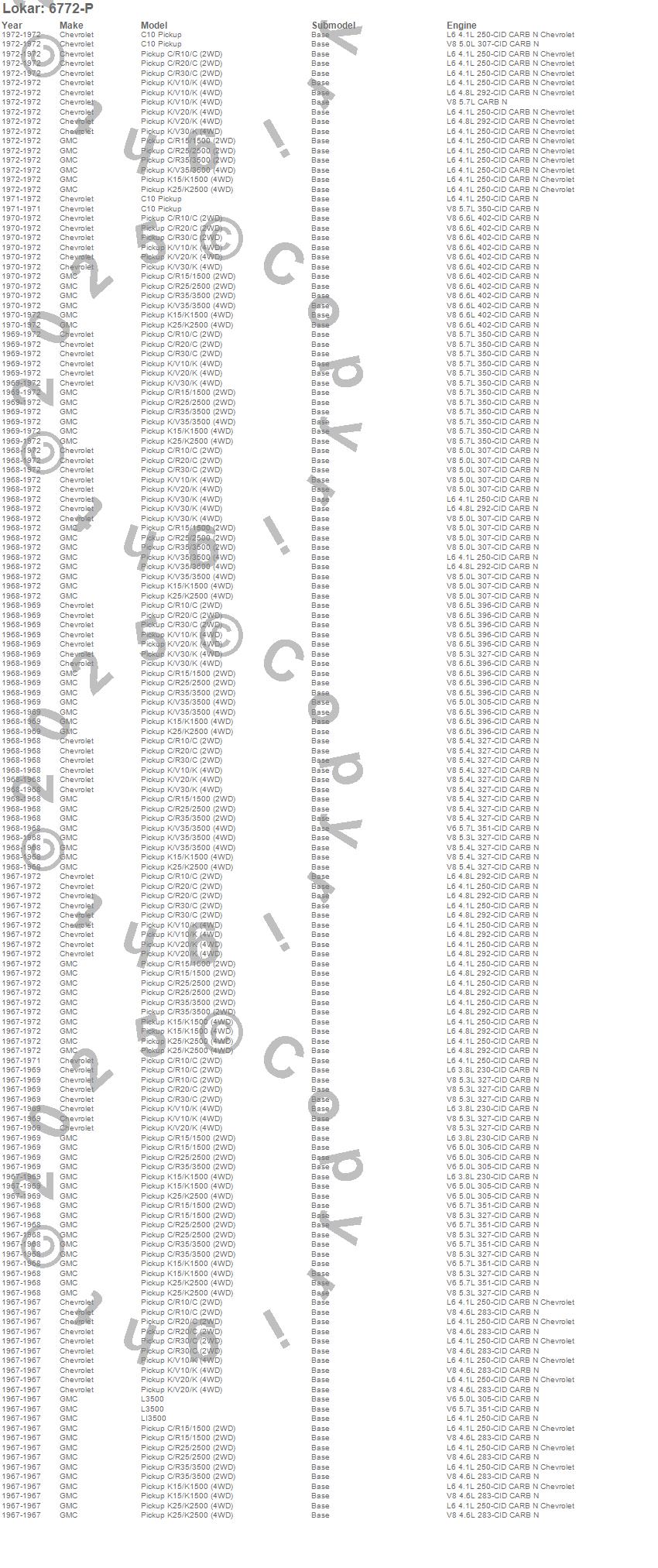 C10 Pickup, C1500 Pickup, C20 Pickup, C25/C2500 Pickup, C30 Pickup, C35/C3500 Pickup, K10 Pickup, K15/K1500, K15/K1500 Pickup, K1500 Pickup, K20 Pickup, K25/K2500 Pickup, K30 Pickup, K35/K3500 Pickup, L3500, LI3500, Chevrolet, GMC, 1972, 1971
