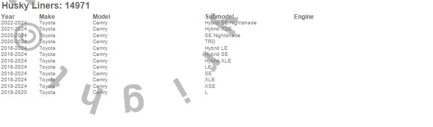 Below is an abbreviated list of applications for the WeatherBeater Floor Liner.