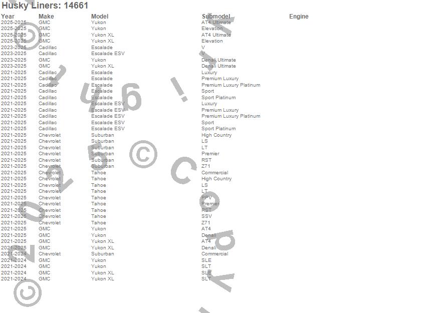 Below is an abbreviated list of applications for the WeatherBeater Floor Liner.