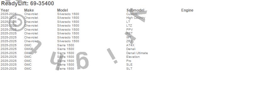 ReadyLift - SST Lift Kit P/N 69-35400 Features: