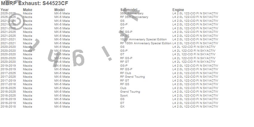 Below is an abbreviated list of applications for the Armor Pro Axle Back Exhaust System.