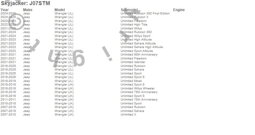 Wrangler (JK), Wrangler (JL), Jeep, 2025, 2024, 2023, 2022, 2021, 2020, 2019, 2018, 2017, 2016, 2015, 2014, 2013, 2012, 2011, 2010, 2009