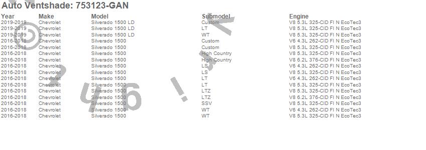 Below is an abbreviated list of applications for the Aeroskin LightShield Color-Match Hood Protector.