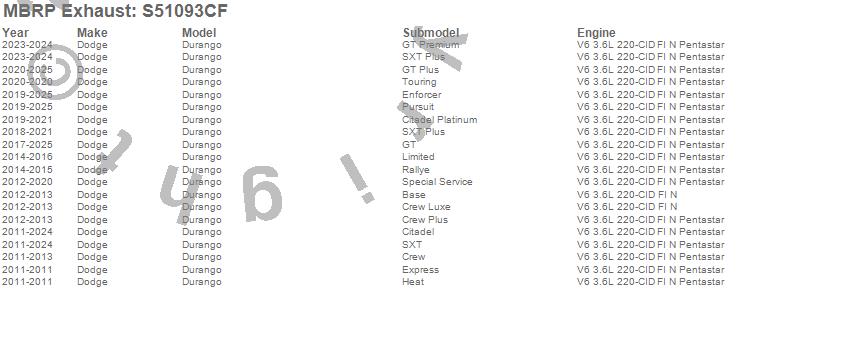 Below is an abbreviated list of applications for the Armor Pro Cat Back Exhaust System.