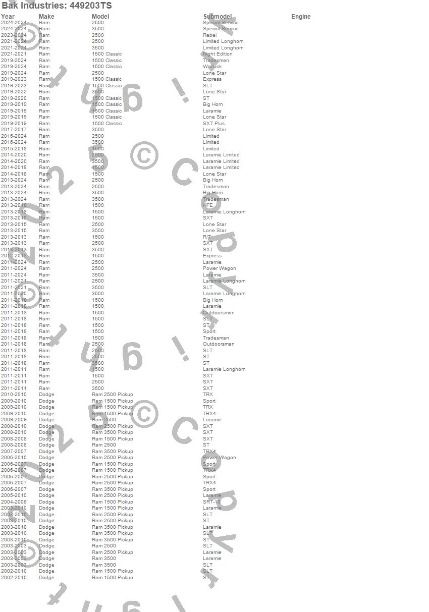Below is an abbreviated list of applications for the BAKFlip MX4 TS Hard Folding Truck Bed Cover.