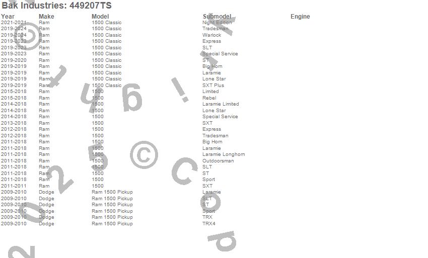 Below is an abbreviated list of applications for the BAKFlip MX4 TS Hard Folding Truck Bed Cover.