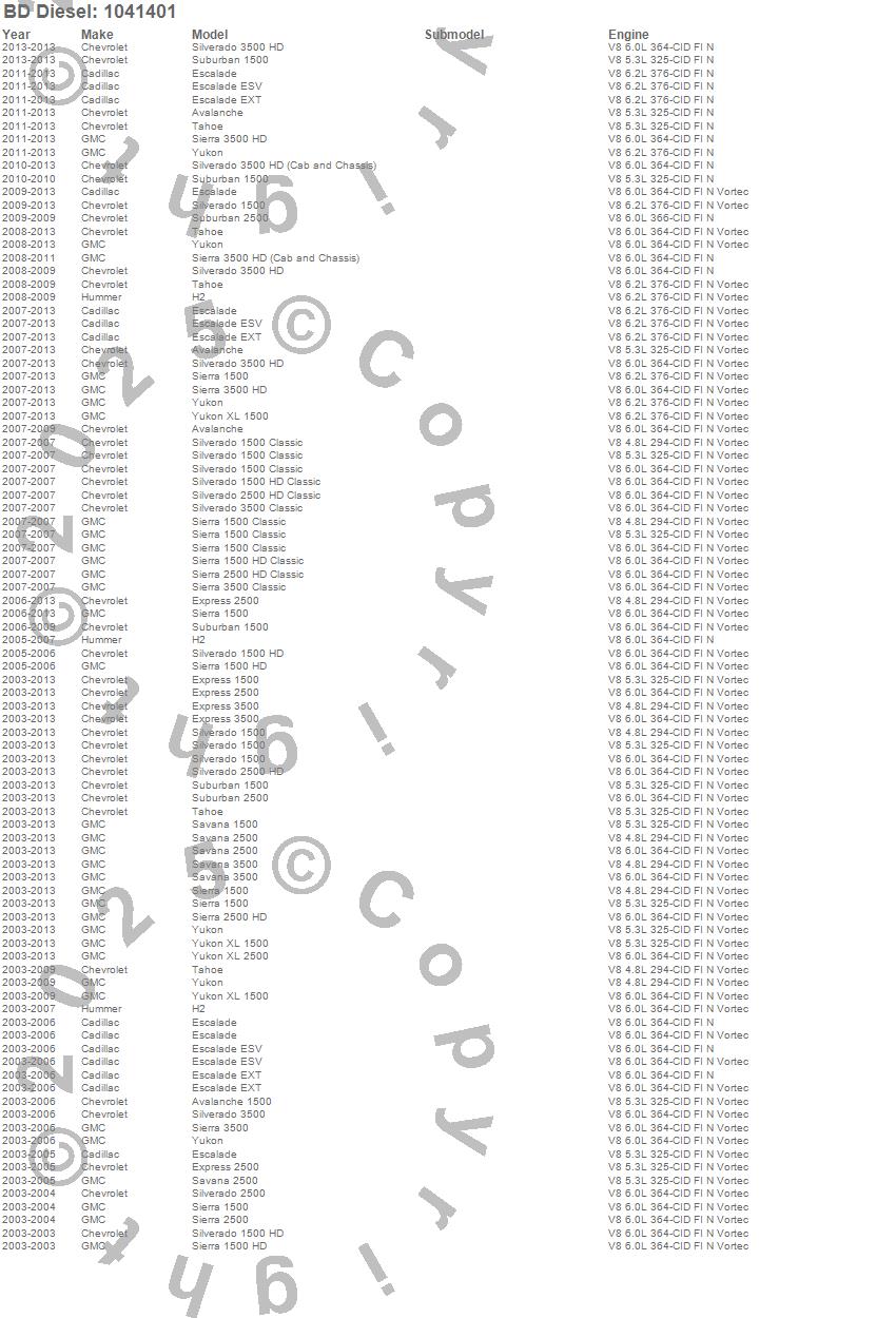 Avalanche, Avalanche 1500, Escalade, Escalade ESV, Escalade EXT, Express 1500, Express 2500, Express 3500, H2, Savana 1500, Savana 2500, Savana 3500, Sierra 1500, Sierra 1500 Classic, Sierra 1500 HD, Sierra 1500 HD Classic, Sierra 2500, Sierra 2500 HD, Sierra 2500 HD Classic, Sierra 3500