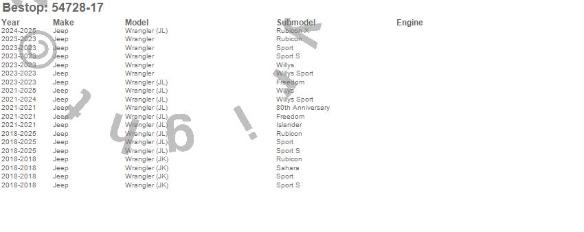Bestop - Supertop Glide P/N 54728-17 Features: