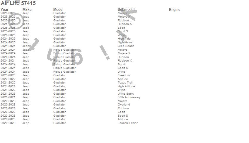 Below is an abbreviated list of applications for the LoadLifter Air Spring Kit.