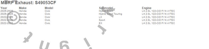 Below is an abbreviated list of applications for the Armor Pro Cat Back Exhaust System.
