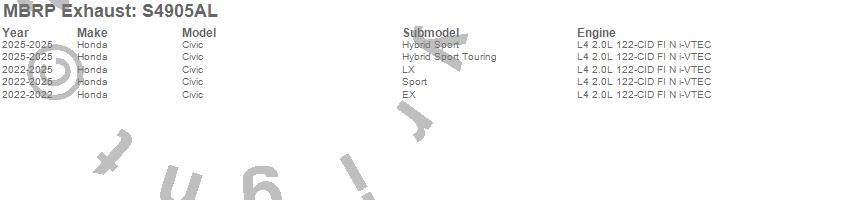 Below is an abbreviated list of applications for the Armor Lite Cat Back Exhaust System.
