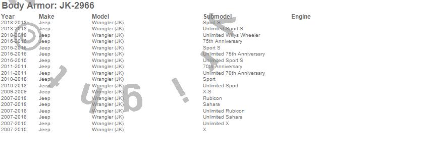 Body Armor - Orion Series Rear Bumper P/N JK-2966 Features: