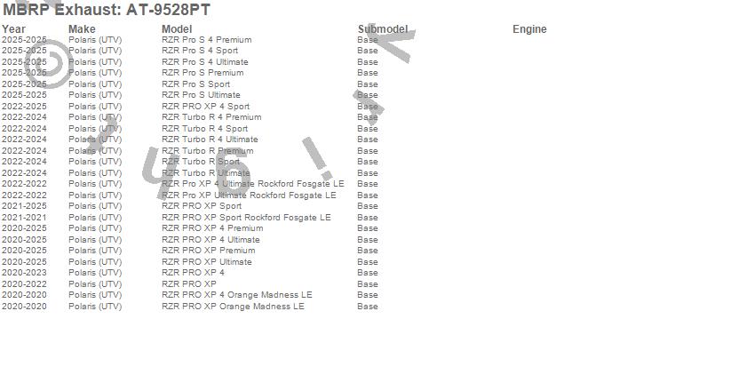 MBRP Exhaust - SXS Performance Exhaust System P/N AT-9528PT Features: