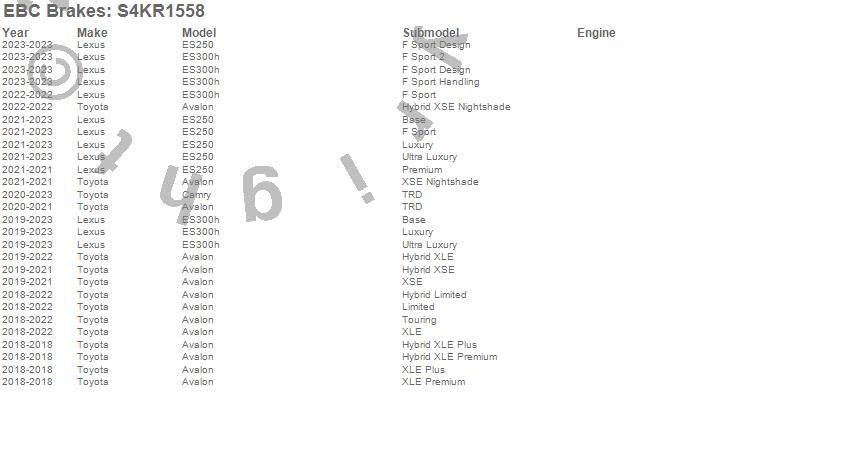 Below is an abbreviated list of applications for the S4 Kits Redstuff and USR Rotor.