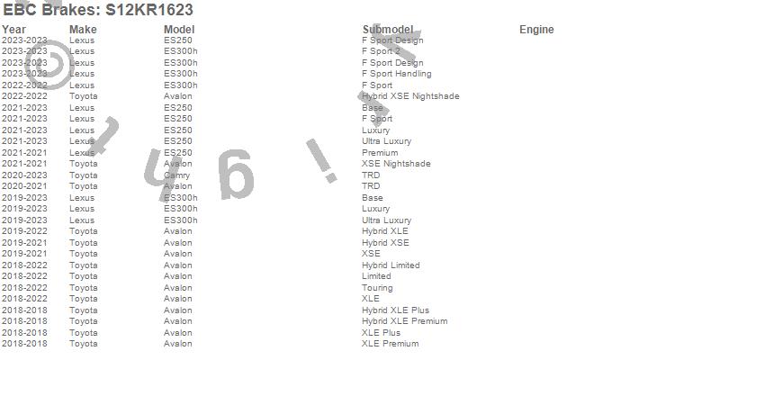 Below is an abbreviated list of applications for the S12 Kits Redstuff and RK Rotors.
