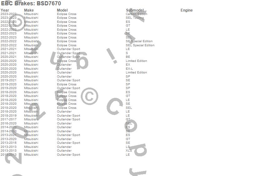 Below is an abbreviated list of applications for the BSD Series Sport Rotor Set w/Ultra Quiet V Slot Configuration.