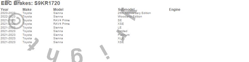 Below is an abbreviated list of applications for the S9 Kits Yellowstuff and USR Rotors.