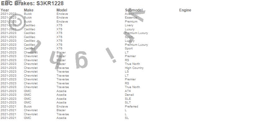 Below is an abbreviated list of applications for the S3 Kits Greenstuff 6000 and GD Rotors Truck/SUV.