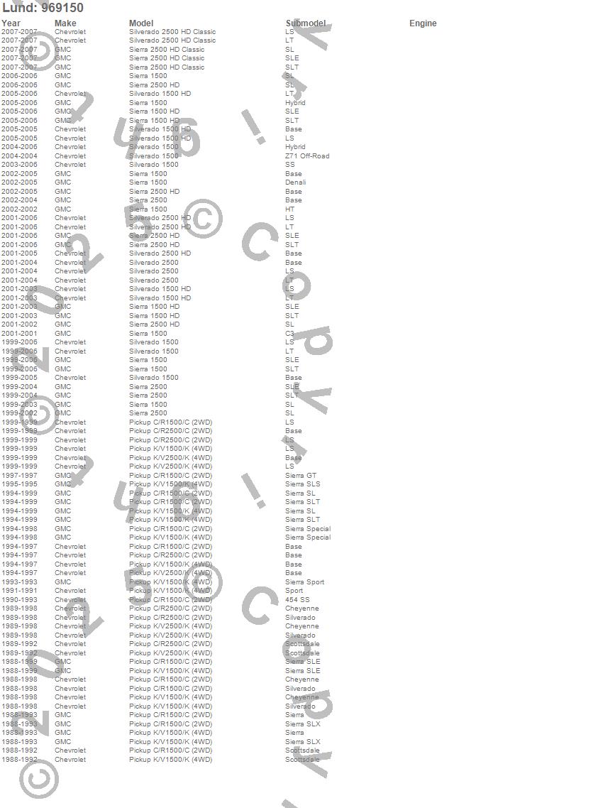 Below is an abbreviated list of applications for the Lund Hard Fold Tonneau.