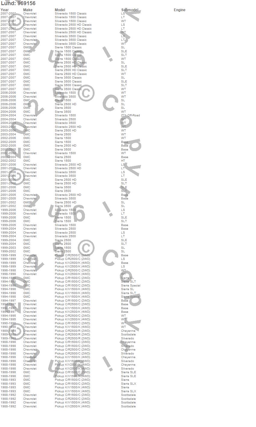 C1500 Pickup, C2500 Pickup, K1500, K1500 Pickup, K2500 Pickup, R2500 Pickup, Sierra 1500, Sierra 1500 Classic, Sierra 2500, Sierra 2500 HD, Sierra 2500 HD Classic, Sierra 3500, Sierra 3500 Classic, Silverado 1500, Silverado 1500 Classic, Silverado 2500, Silverado 2500 HD, Silverado 2500 HD Classic, Silverado 3500, Silverado 3500 Classic