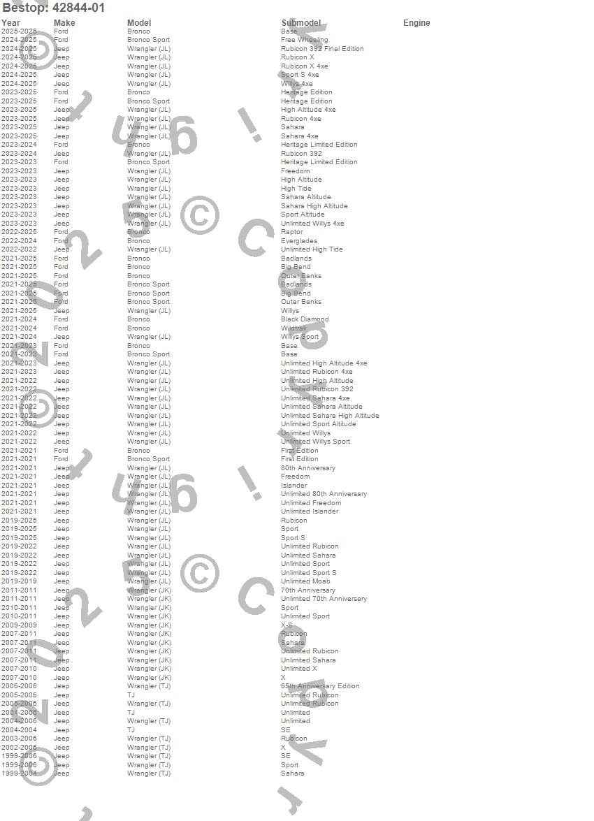 Bronco, Bronco Sport, TJ, Wrangler, Wrangler (JK), Wrangler (JL), Wrangler (TJ), Ford, Jeep, 2026, 2025, 2024, 2023, 2022, 2021, 2020, 2019, 2011, 2010, 2009