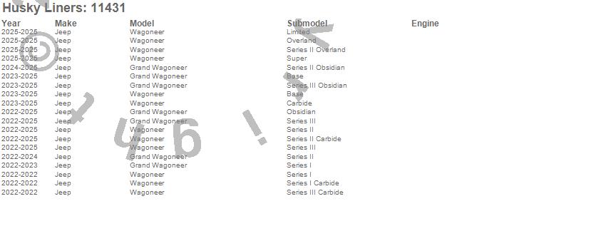 Below is an abbreviated list of applications for the WeatherBeater Floor Liner.