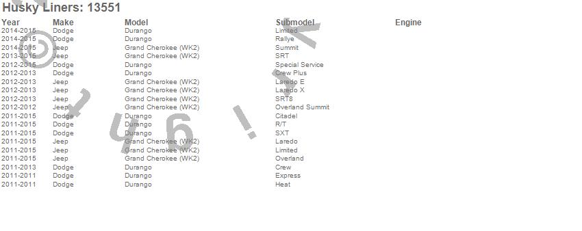 Below is an abbreviated list of applications for the WeatherBeater Floor Liner.
