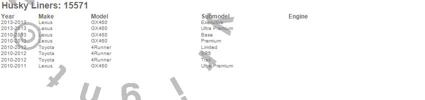 Below is an abbreviated list of applications for the WeatherBeater Floor Liner.