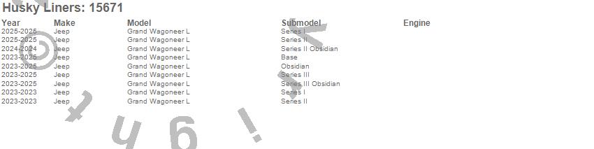 Below is an abbreviated list of applications for the WeatherBeater Floor Liner.