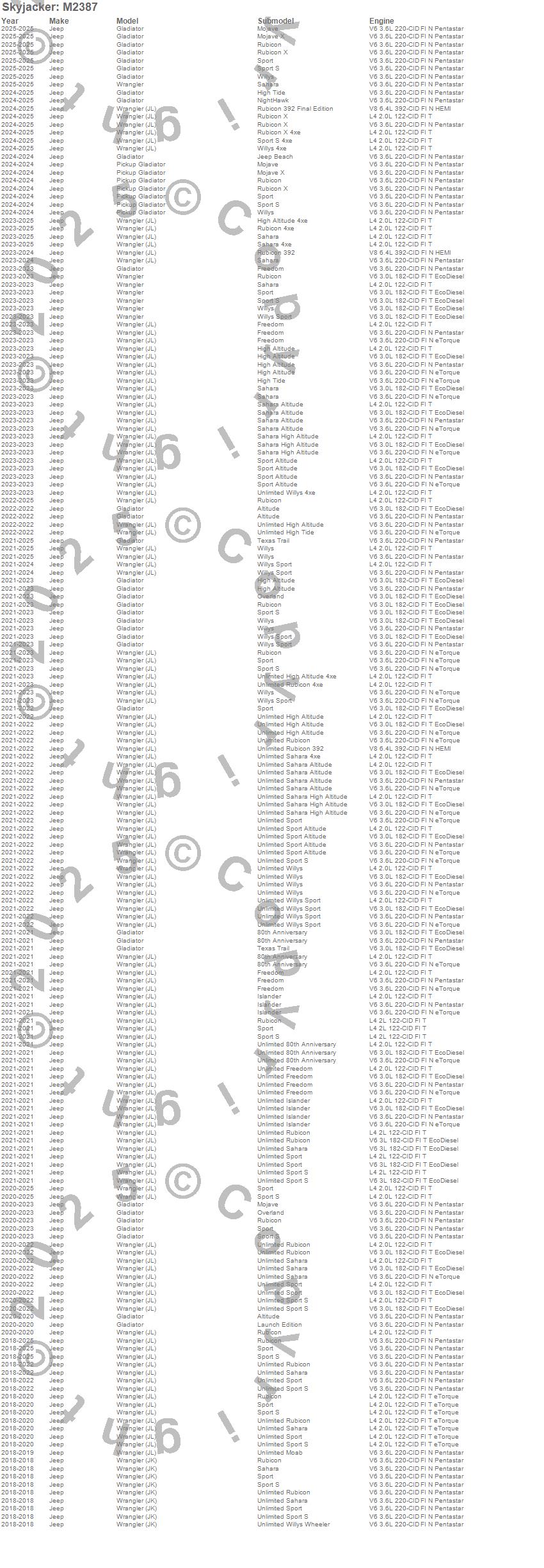 Gladiator, Pickup Gladiator, Wrangler, Wrangler (JK), Wrangler (JL), Jeep, 2025, 2024, 2023, 2022, 2021, 2020, 2019, 2018