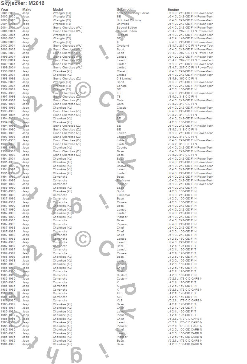 Cherokee (XJ), Comanche, Grand Cherokee (WJ), Grand Cherokee (ZJ), Wrangler (TJ), Jeep, 2006, 2005, 2004, 2003, 2002, 2001, 2000, 1999, 1998, 1997, 1996, 1995, 1994, 1993